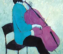 Liturinn höfðar mjög sterkt til mín, og þó þetta séu fígúratívar myndir, þá eru þær byggðar á litnum fyrst og fremst. Manneskja og hljóðfæri hafa mér alltaf þótt mjög falleg saman.¹