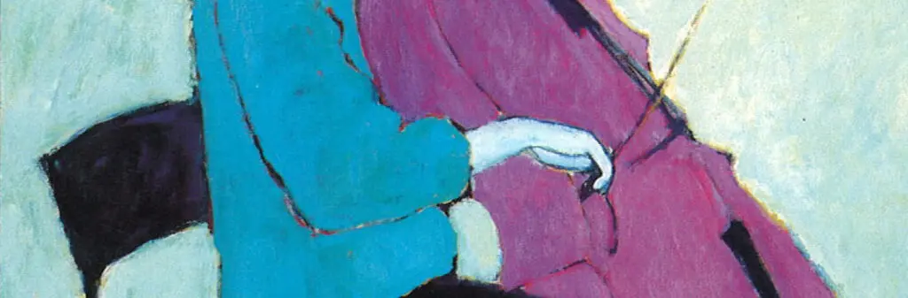 Liturinn höfðar mjög sterkt til mín, og þó þetta séu fígúratívar myndir, þá eru þær byggðar á litnum fyrst og fremst. Manneskja og hljóðfæri hafa mér alltaf þótt mjög falleg saman.¹