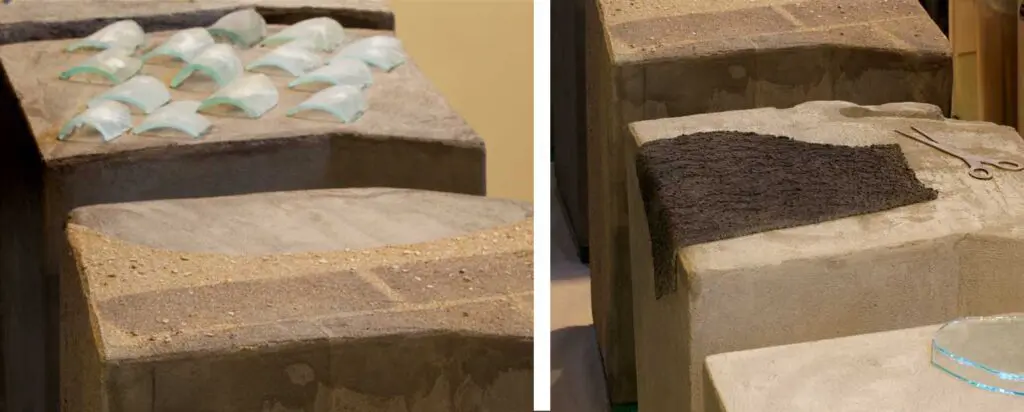 Í verkunum á sýningunni Vörður leitar Jónína Guðnadóttir (f. 1943) aftur til bernsku sinnar og mótunarára um miðja síðustu öld. Hún finnur hugmyndum sínum form í skúlptúrum og veggverkum þar sem saman fara fjölbreyttur efniviður á borð við steinsteypu, gler og leir.
